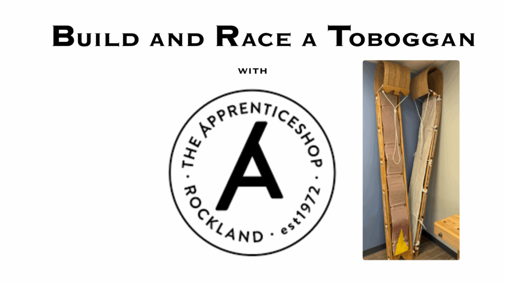 The Apprenticeshop will offer a 2-day workshop on Saturday, Dec. 20, and Sunday, Dec. 21, at the GRACE Innovation Center to adults who want to build their own toboggan and, if they’re feeling competitive, race against our students in the U.S. National Championships on Feb. 6-8 at the Camden Snow Bowl!